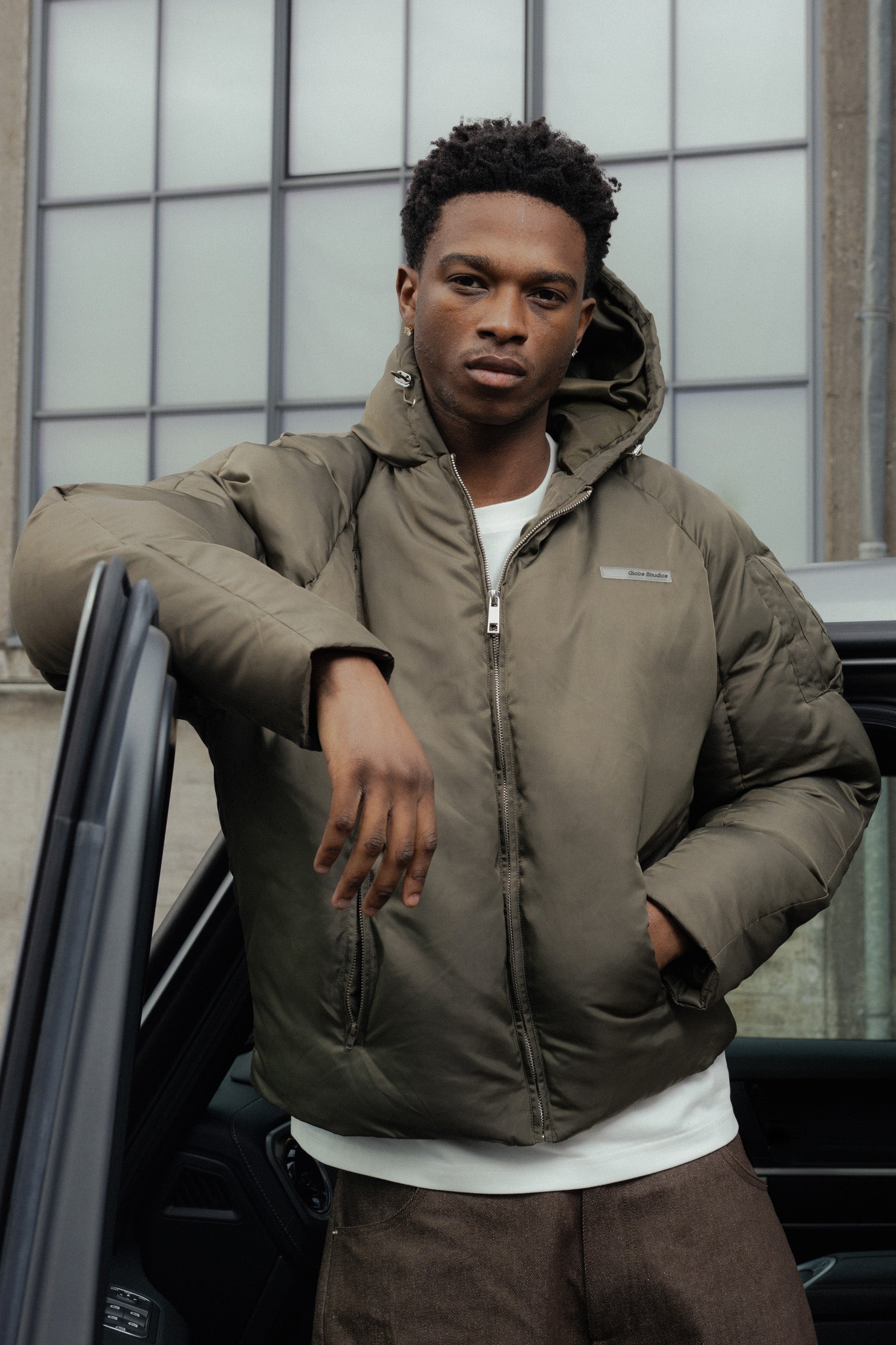 Our Winter Bomber Jacket is made from a water-repellent material that protects against rain and snow. The jacket has a cropped fit. The design is rounded off with an adjustable hood, practical zip pockets at the front, and a discreet pocket on the back, which adds a unique and functional element.