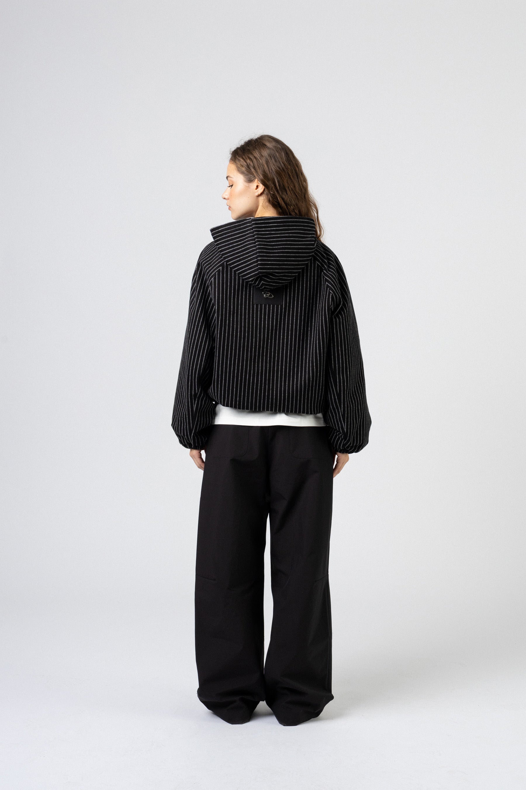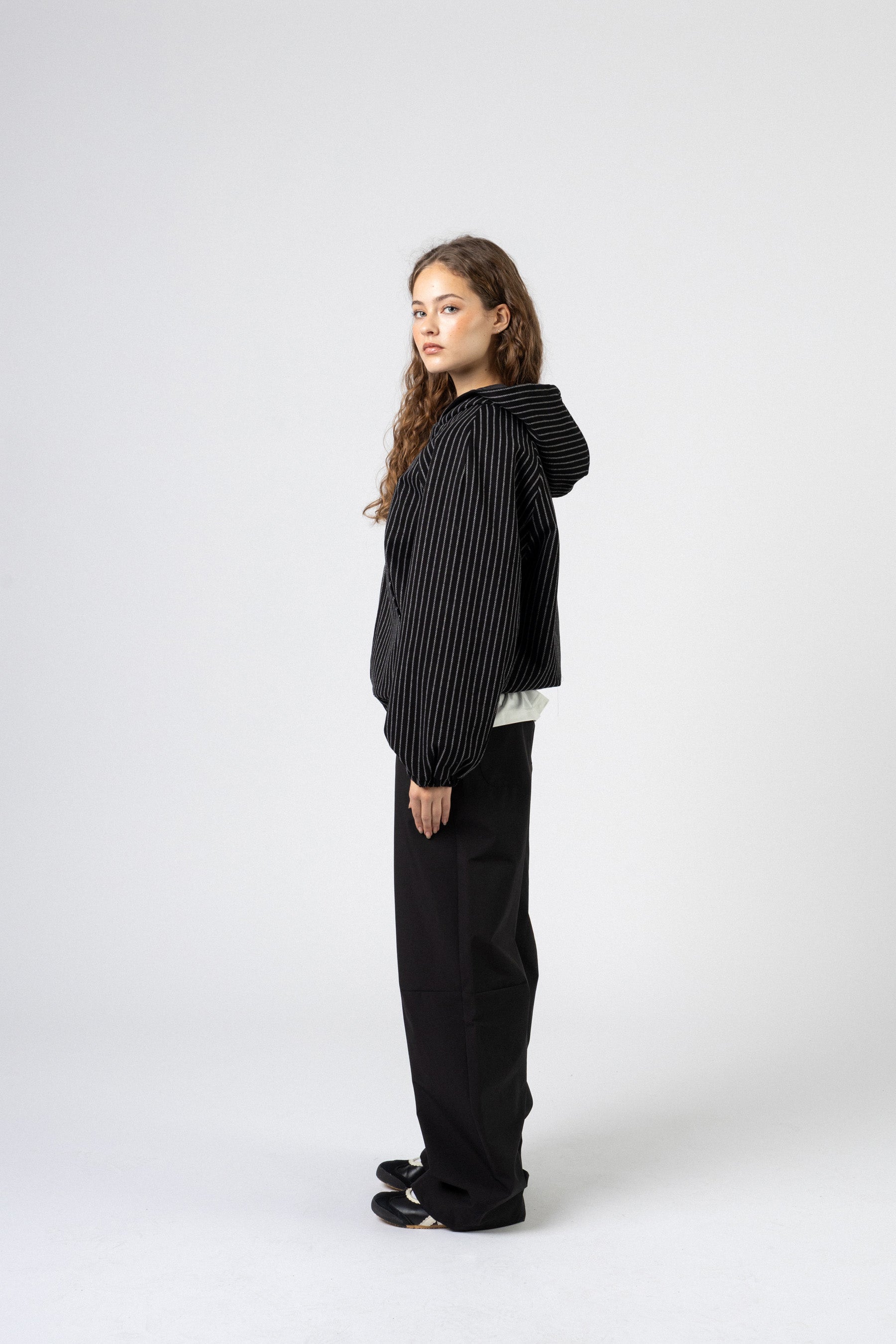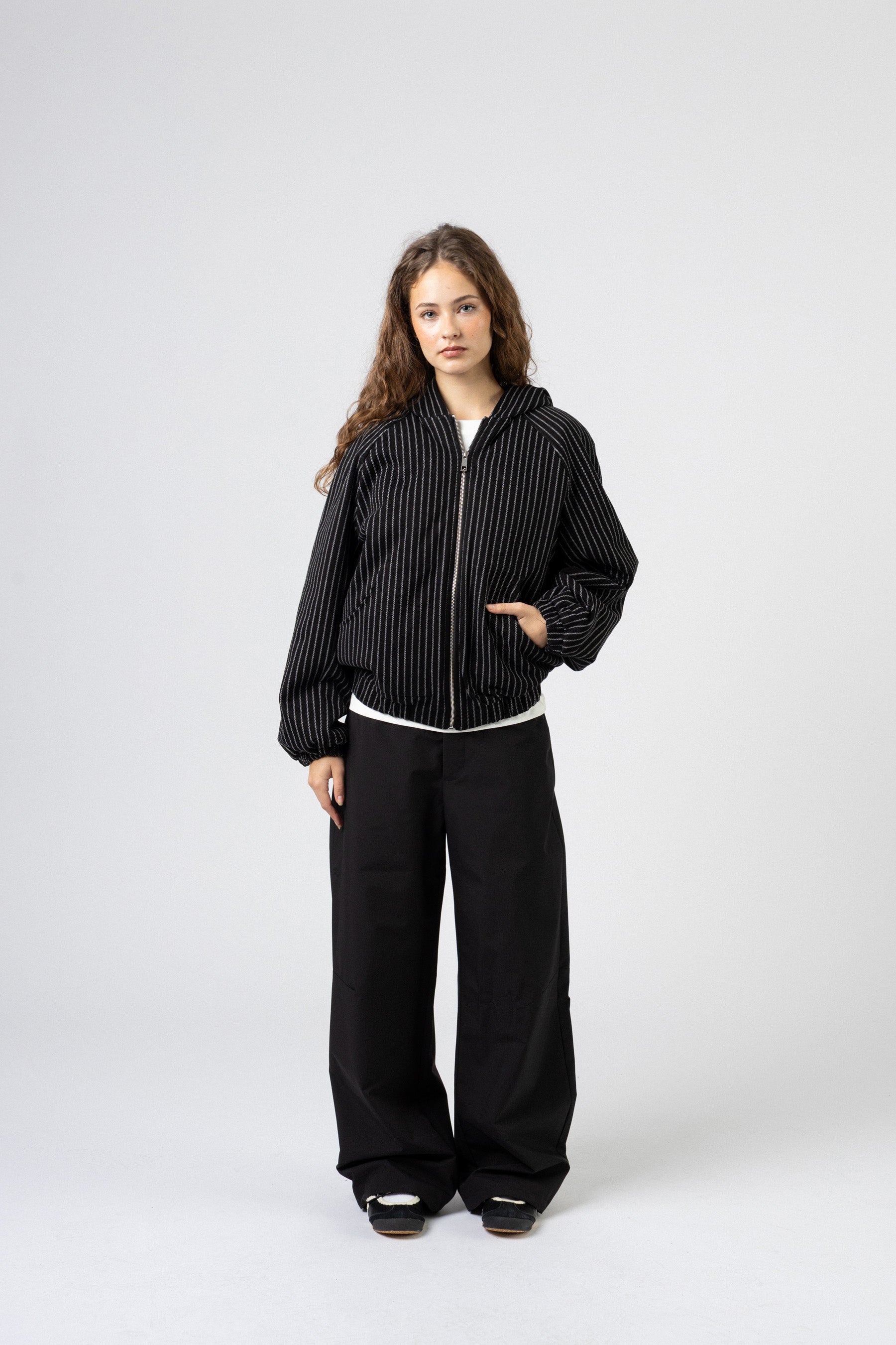 Striped Hood Jacket. Jakken er femstillet i et blødt materiale, foret med quiltet inderfor. Jakken er udstyret med to sidelommer, fuld lynlåslukning og elastiske afslutninger ved ærmer og bund. .