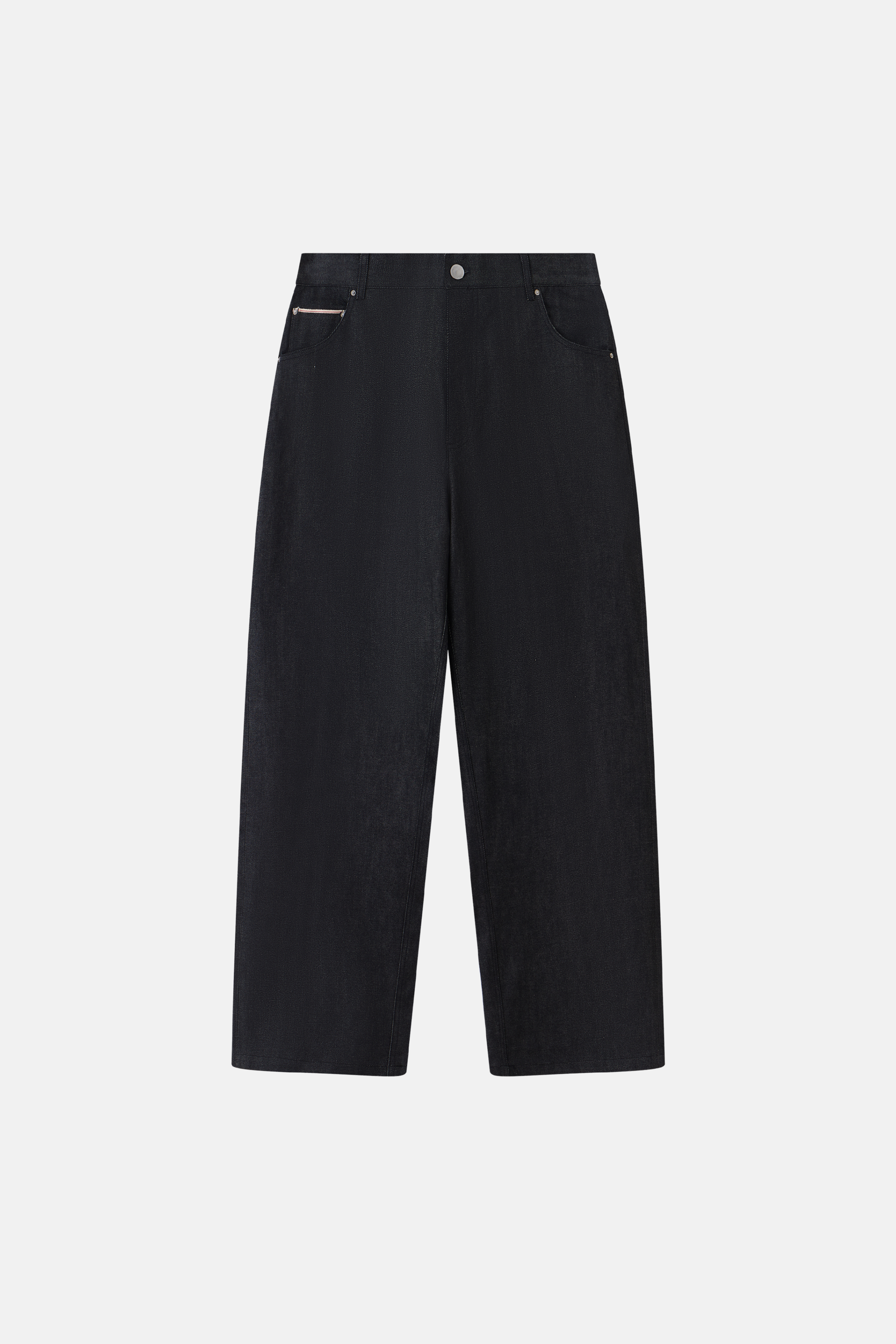 Selvedge Denim Jeans 'Black' er fremstillet i selvedge-denim, 13,8 oz. Selvedge Denim Jeans 'Black' har en struktureret baggy pasform med mid-waist, fem klassiske lommer og kontrastsyninger. Den synlige selvedge-kant ved oplægningen tilføjer en diskret, men eksklusiv detalje.