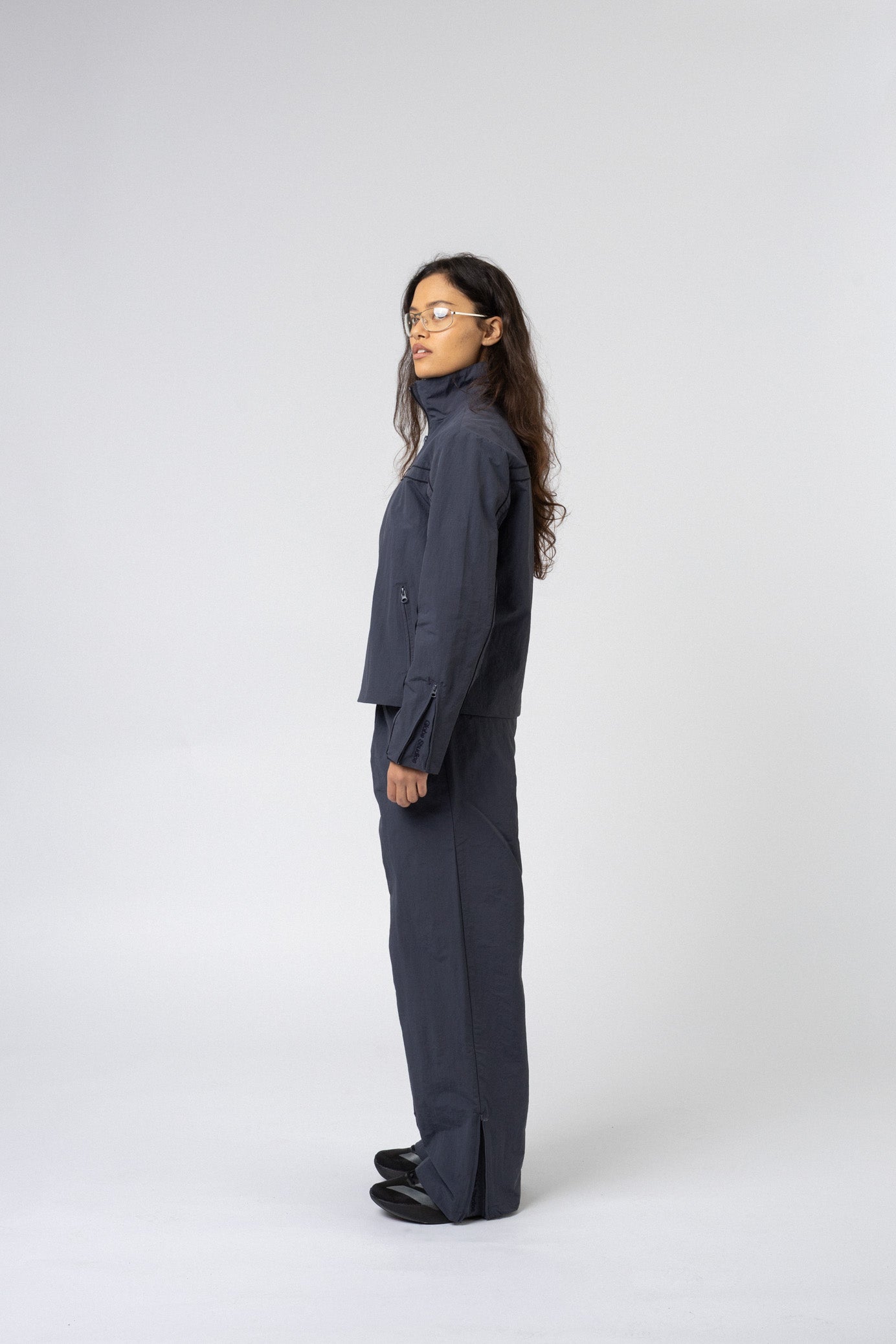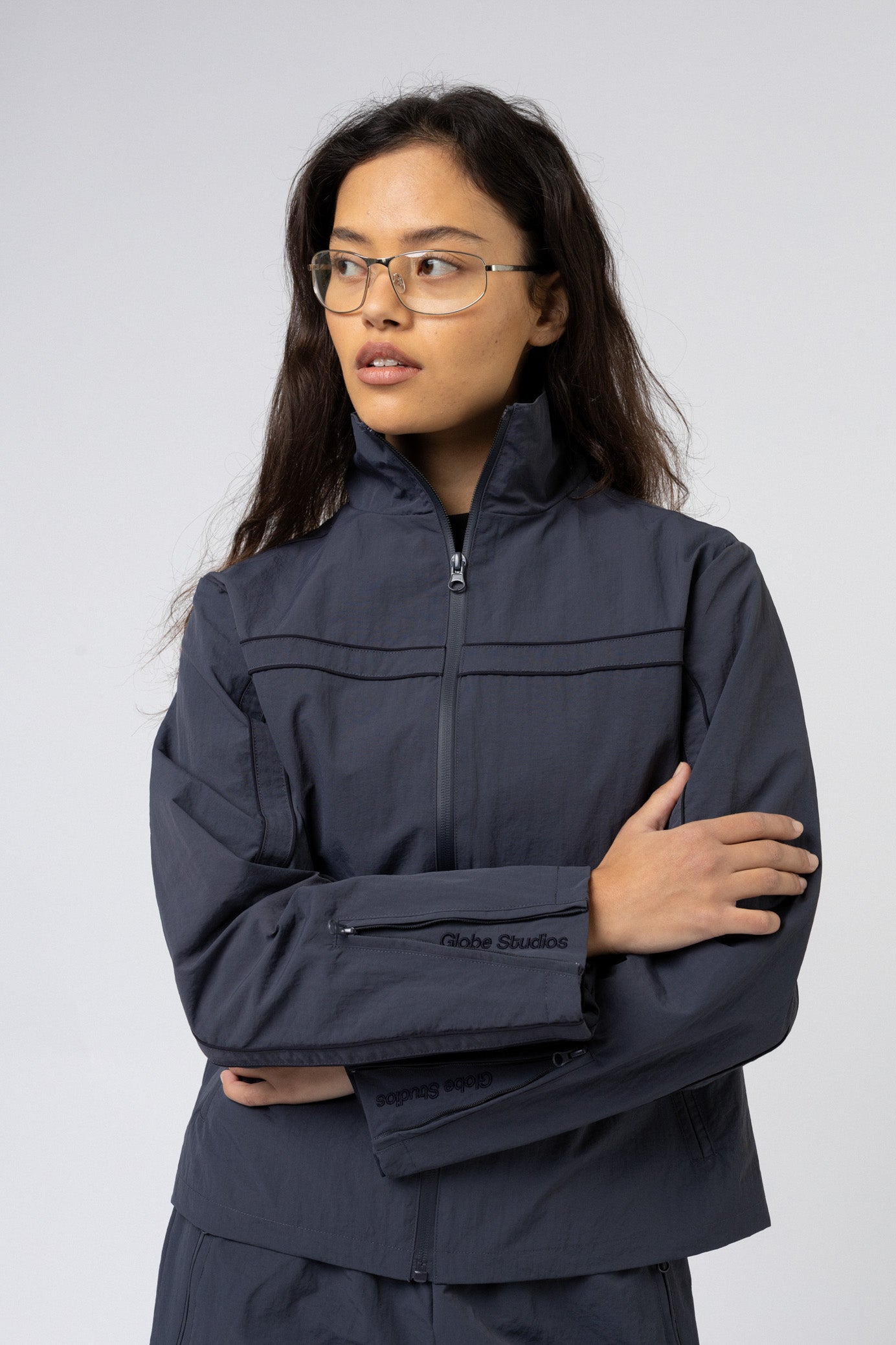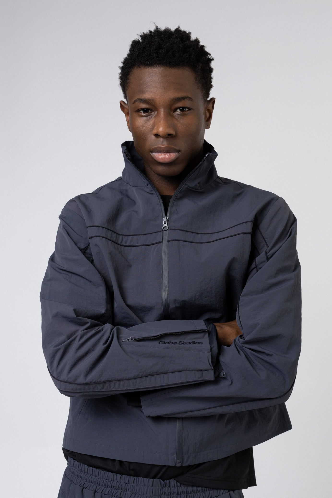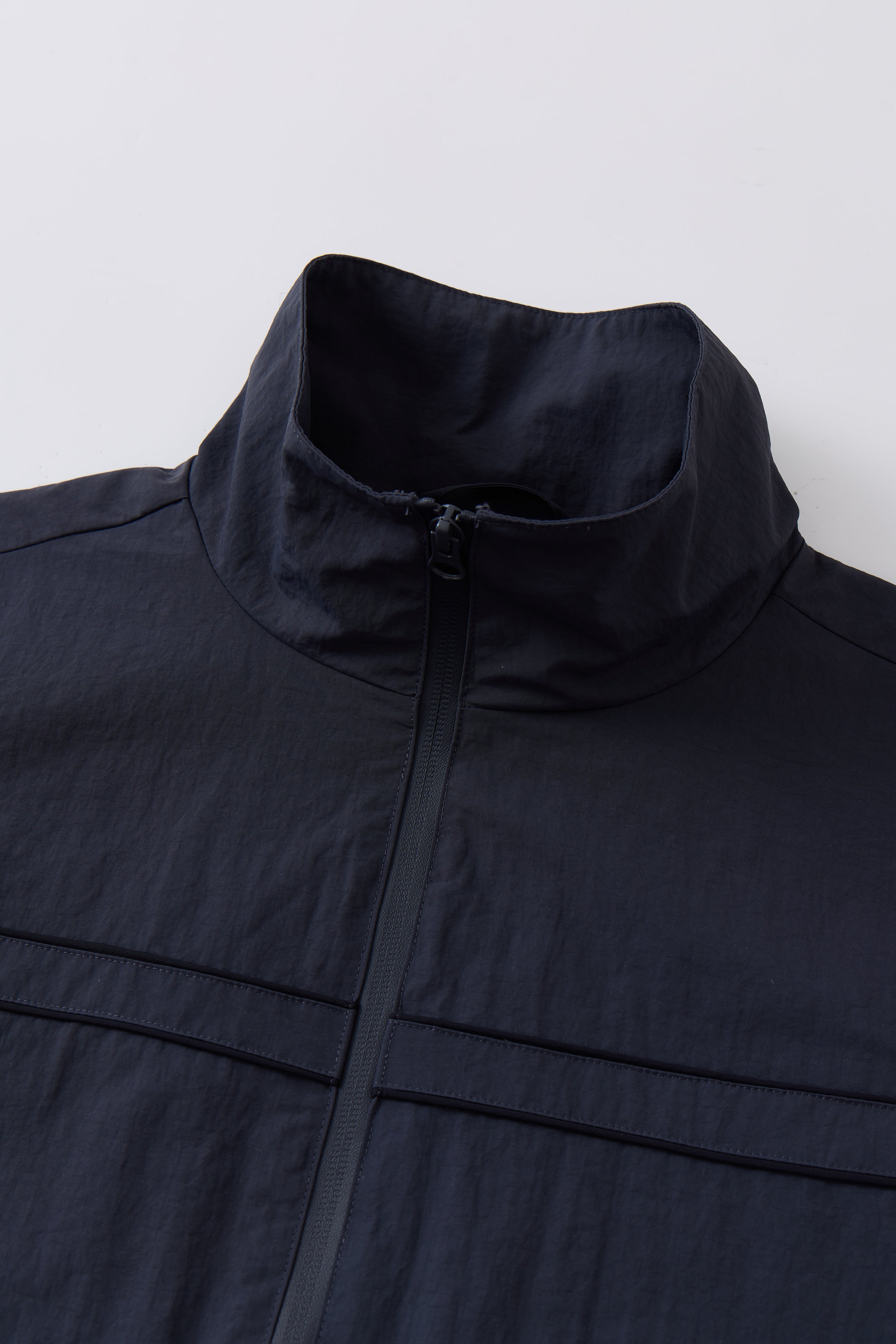 High collar with full-length zipper