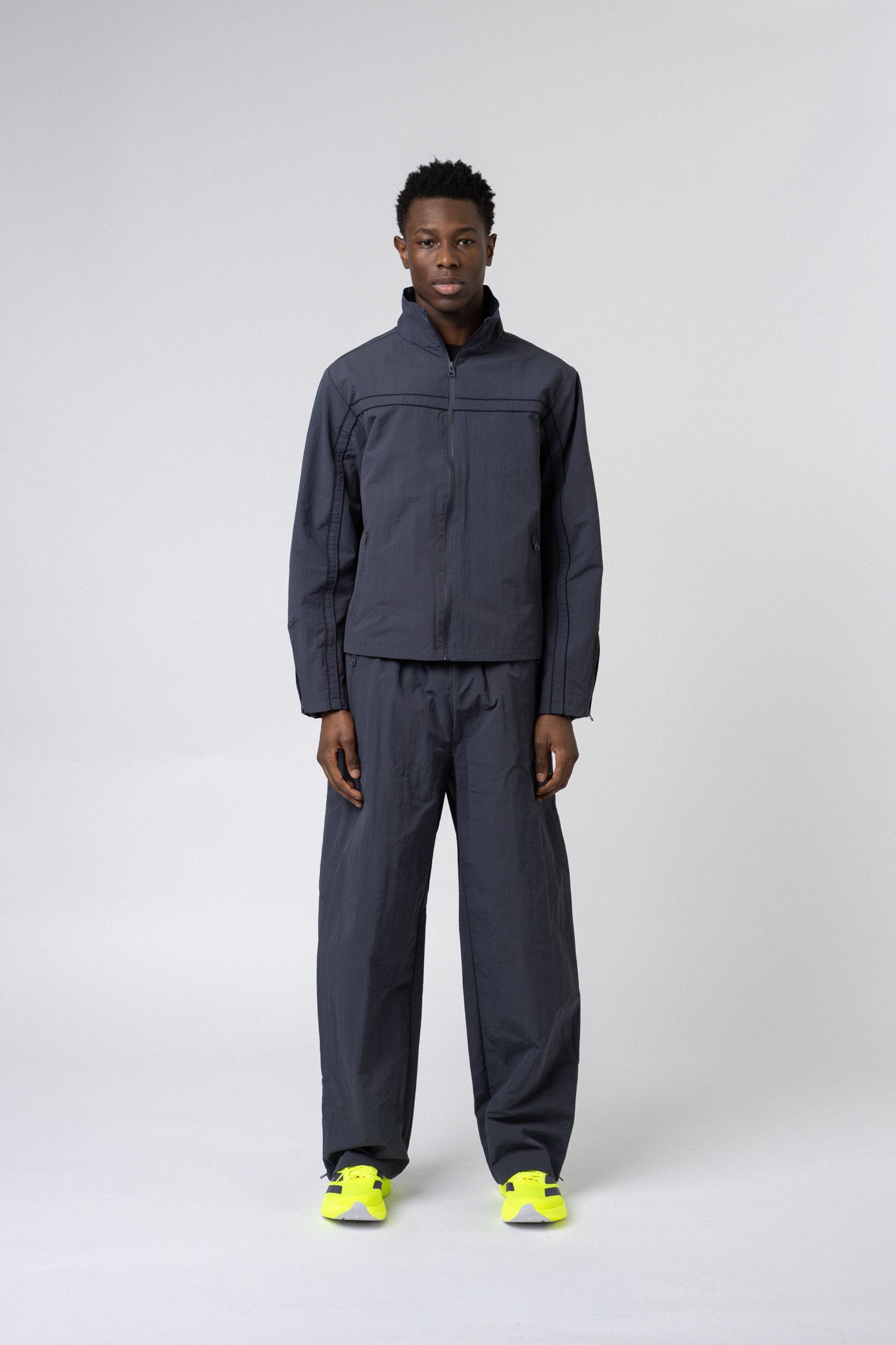 The 195 Track jacket is designed with a clean and technical look, where function and comfort go hand in hand. Made from 100% nylon, the jacket has a lightweight and durable quality that feels comfortable while protecting against wind.