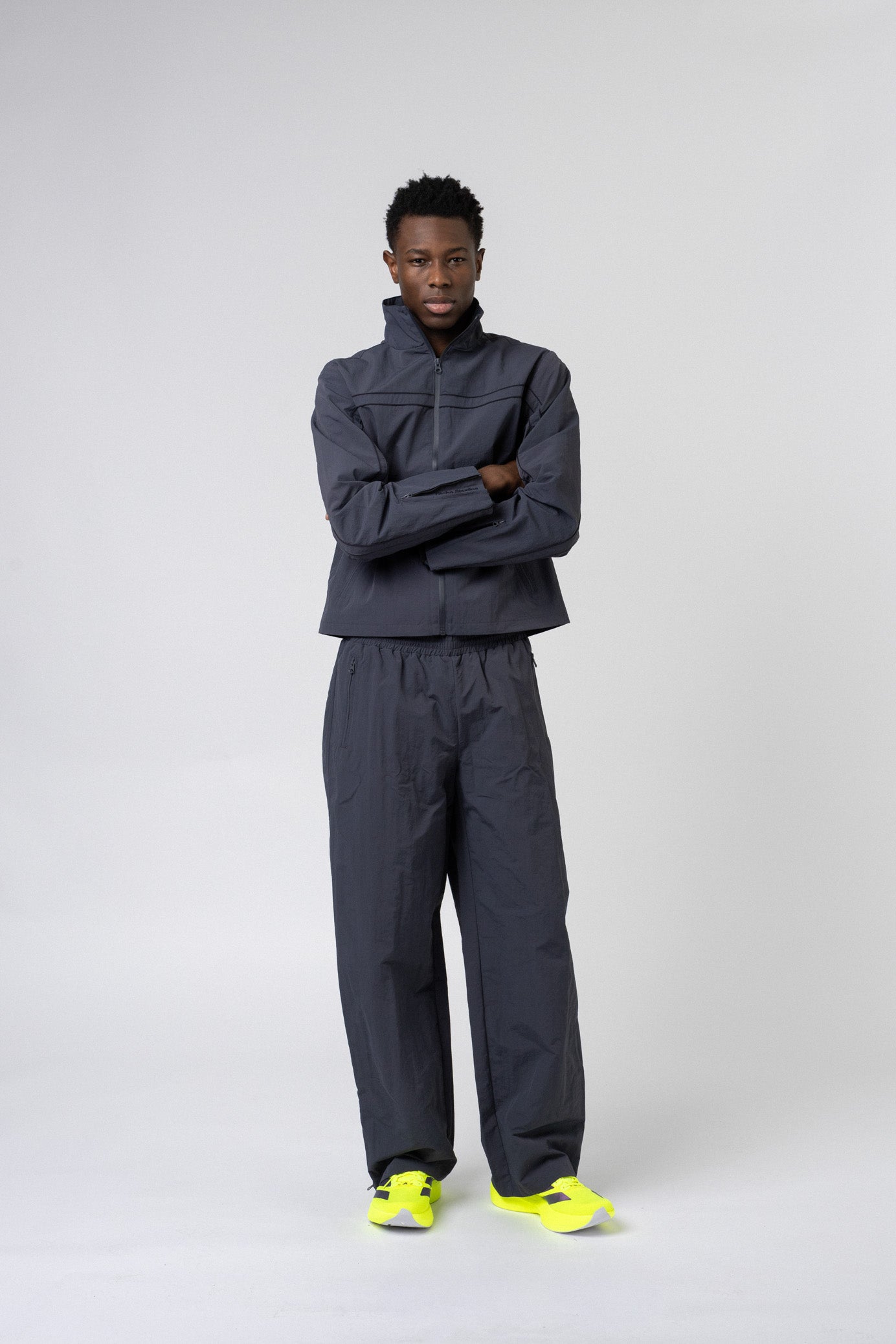 The 195 Track Pants combine comfort and flexibility with a modern design. The pants have a wide elastic waistband and internal drawstring for an adjustable fit. A unique zipper function at the legs allows you to customize the look and create your own look.