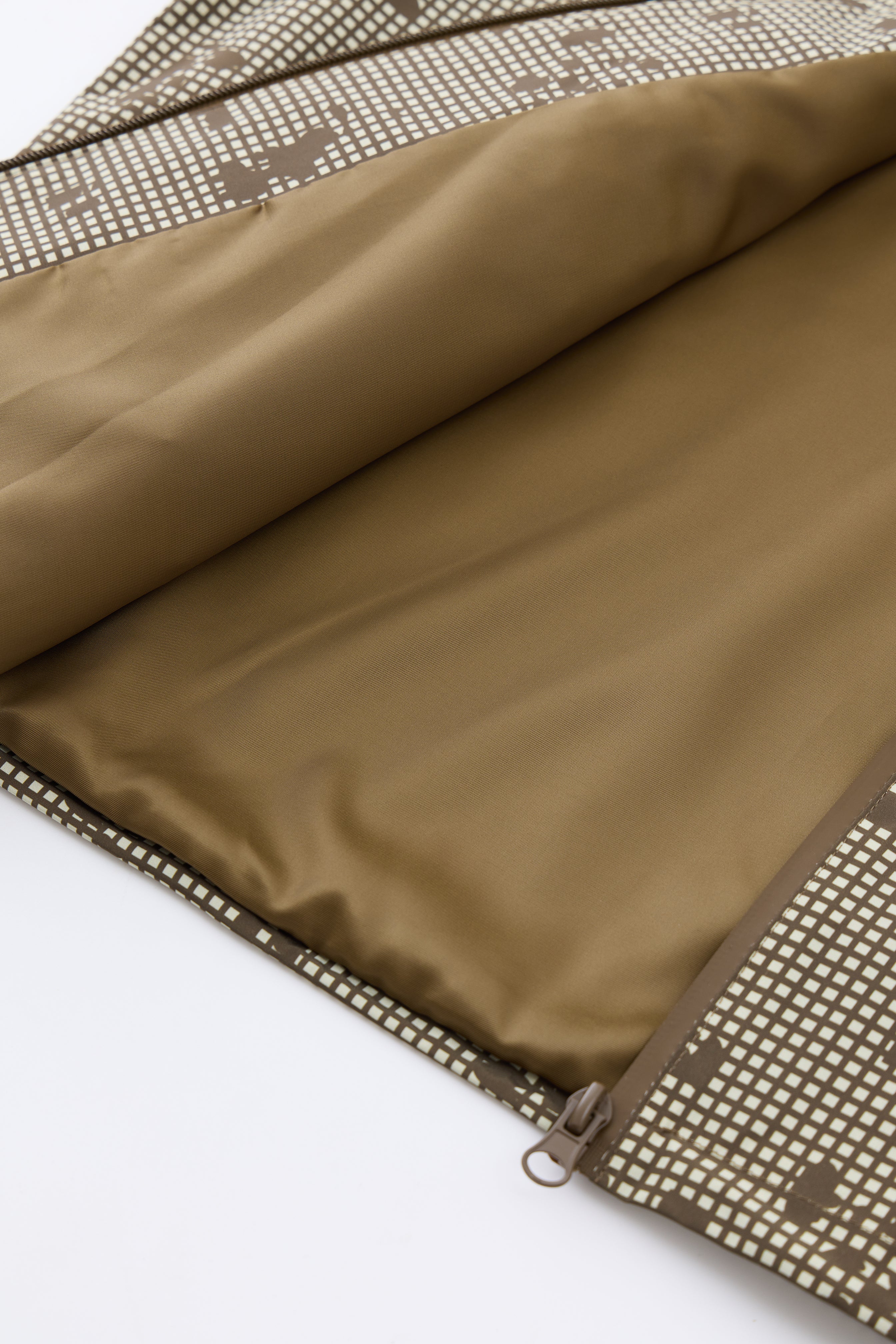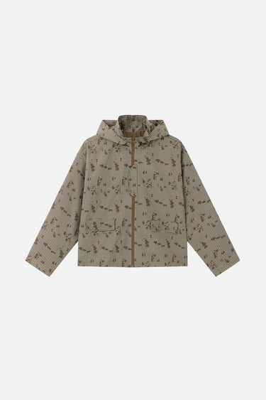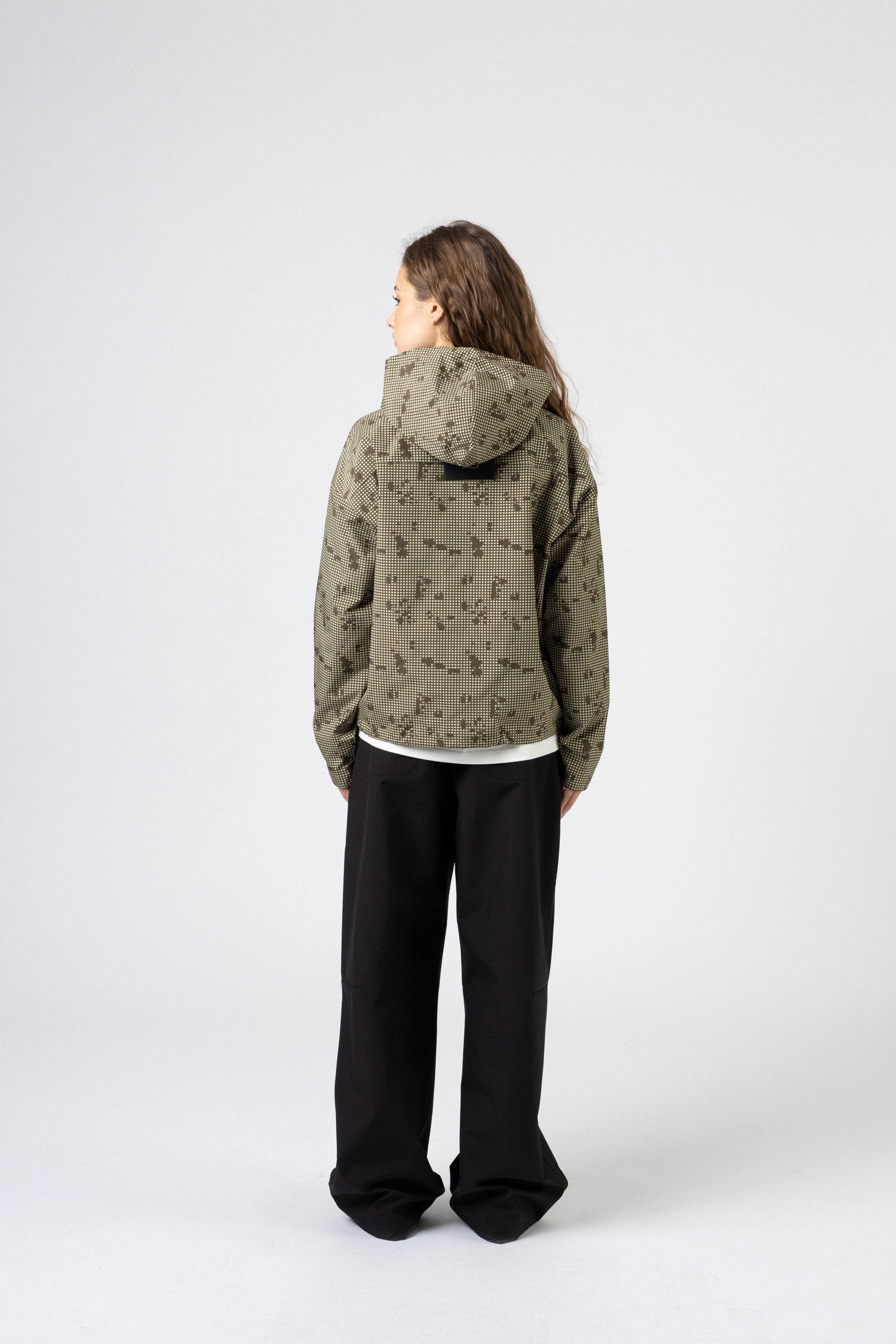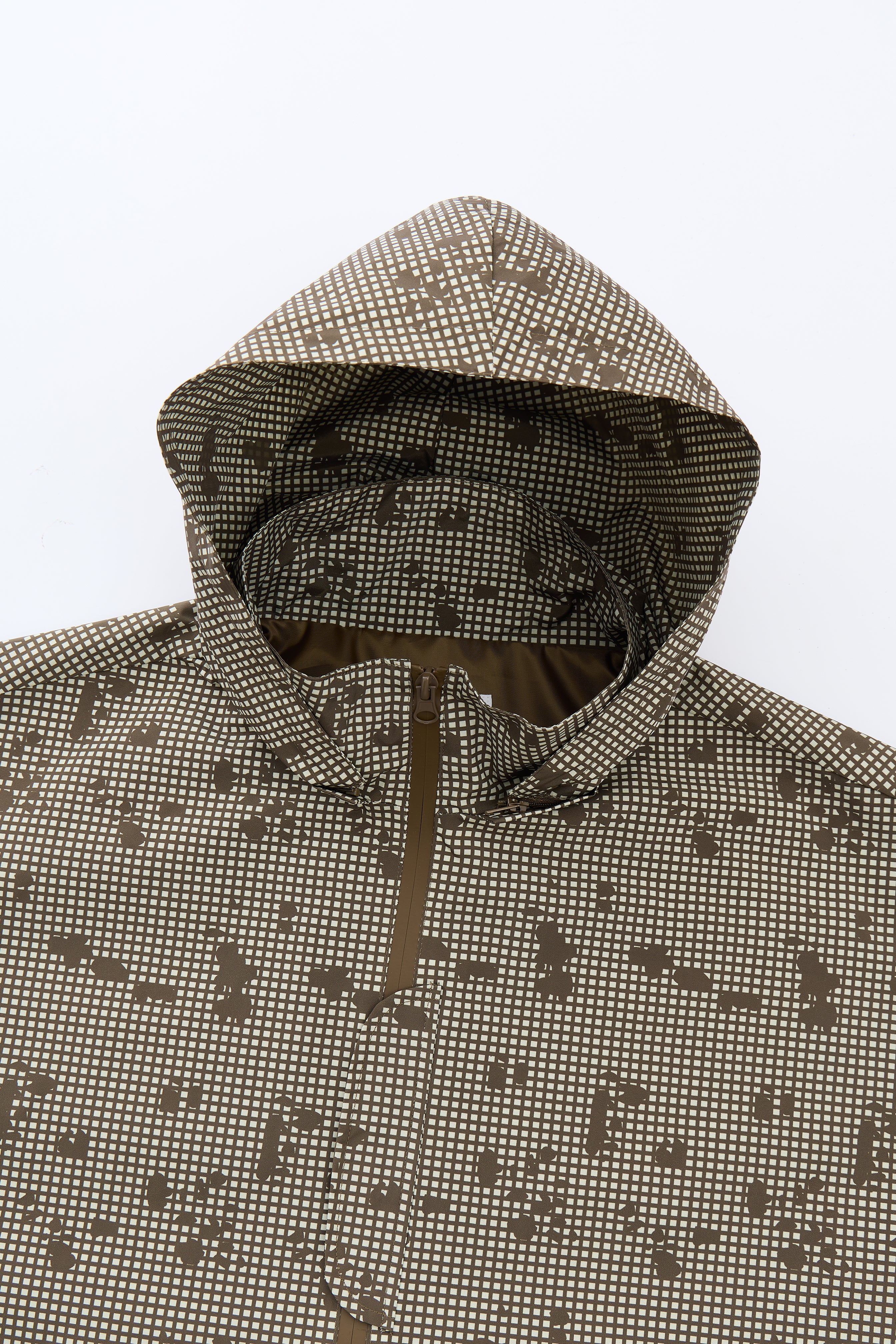 The jacket has adjustable features at the hood and hem for a customized fit, as well as practical details like front pockets with flaps and a hidden back pocket for extra storage.