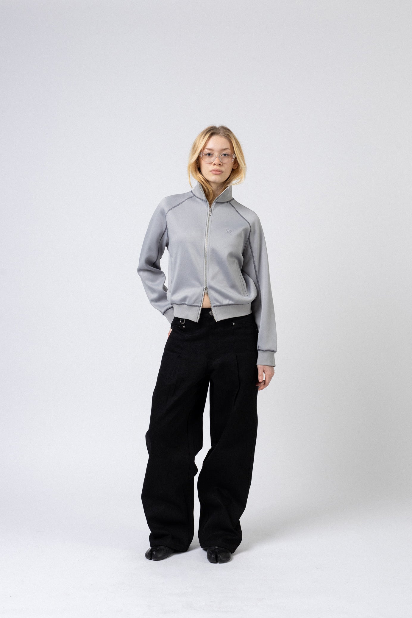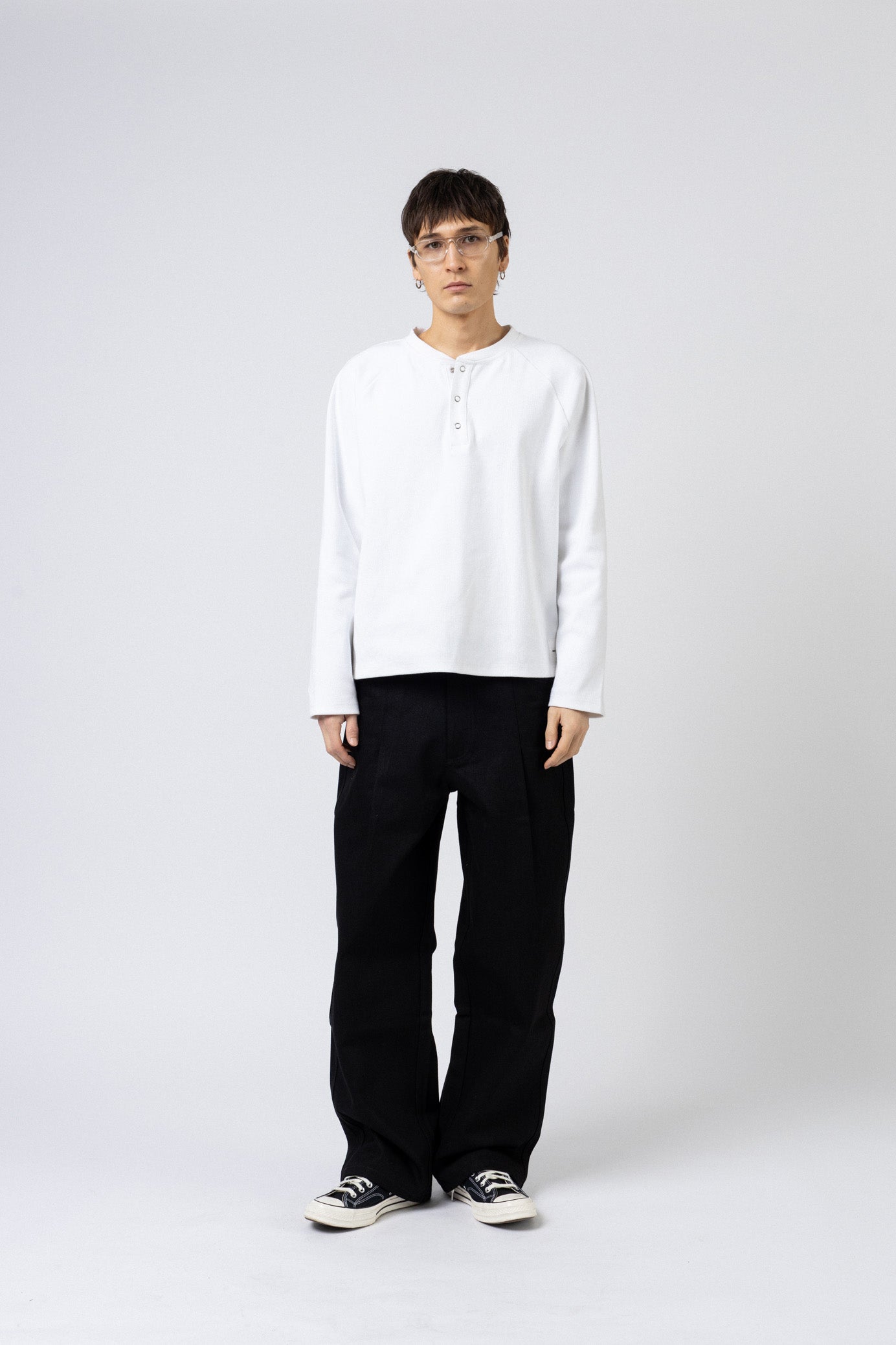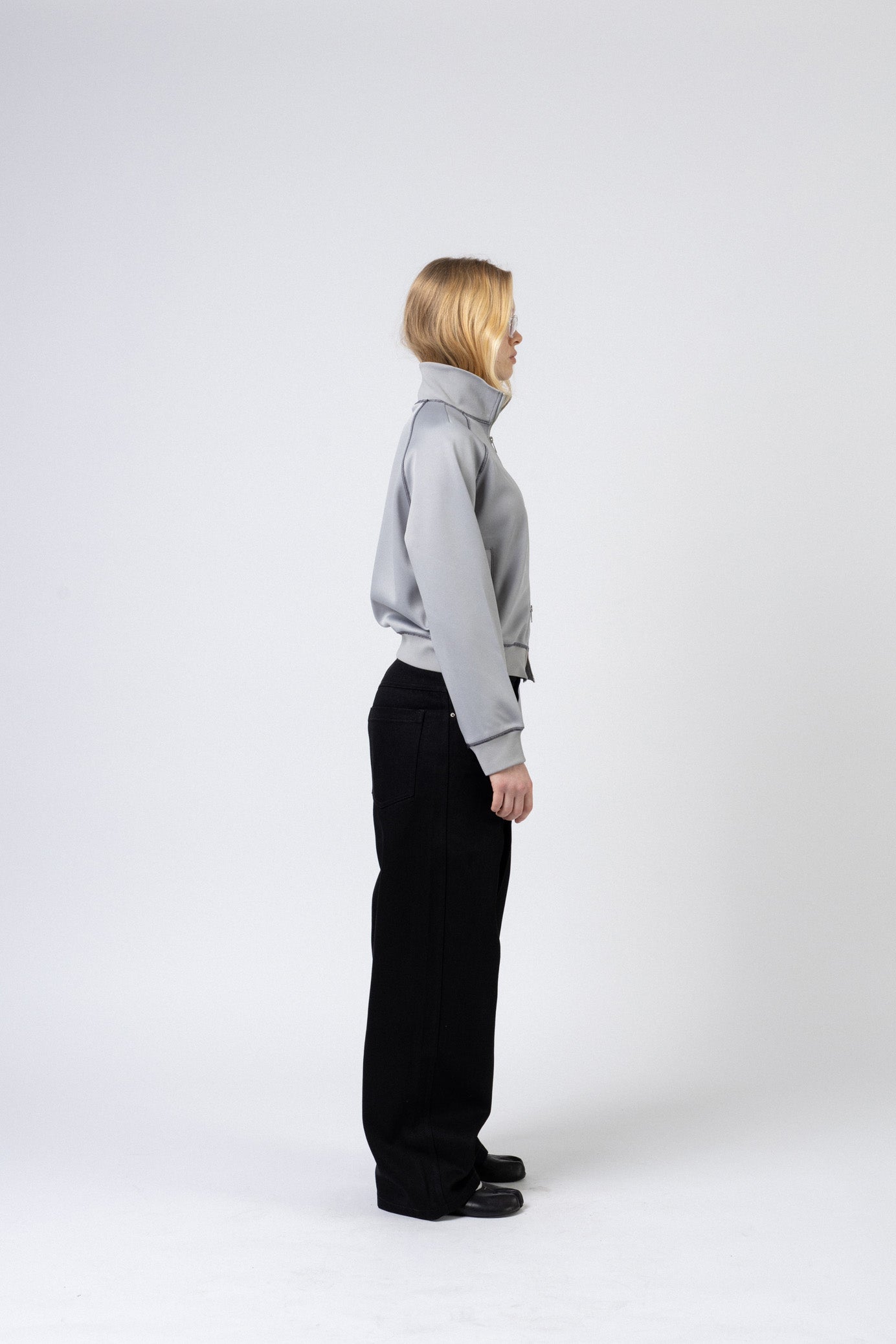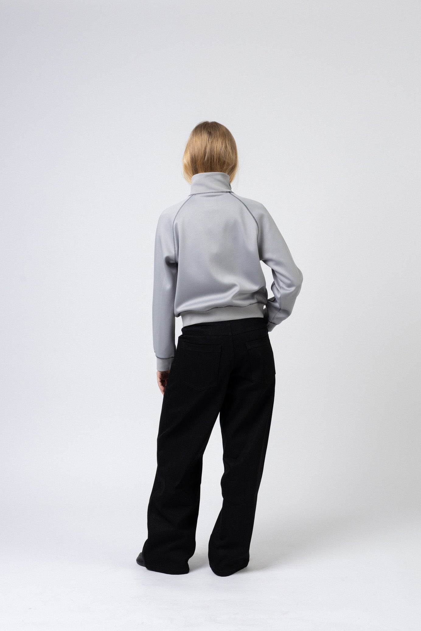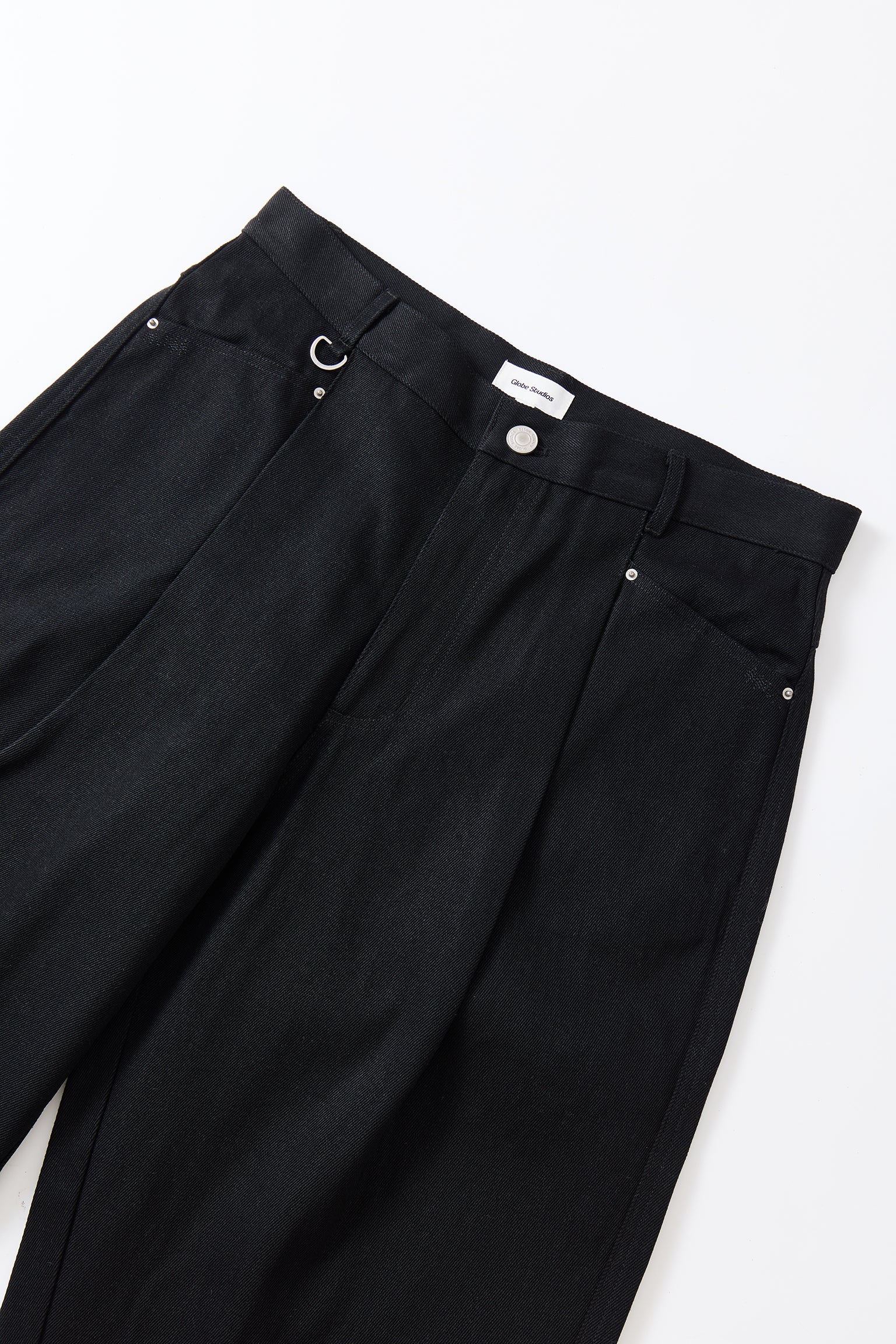 Raw Denim Jeans have a structured baggy fit with mid-waist, five classic pockets and contrast stitching.