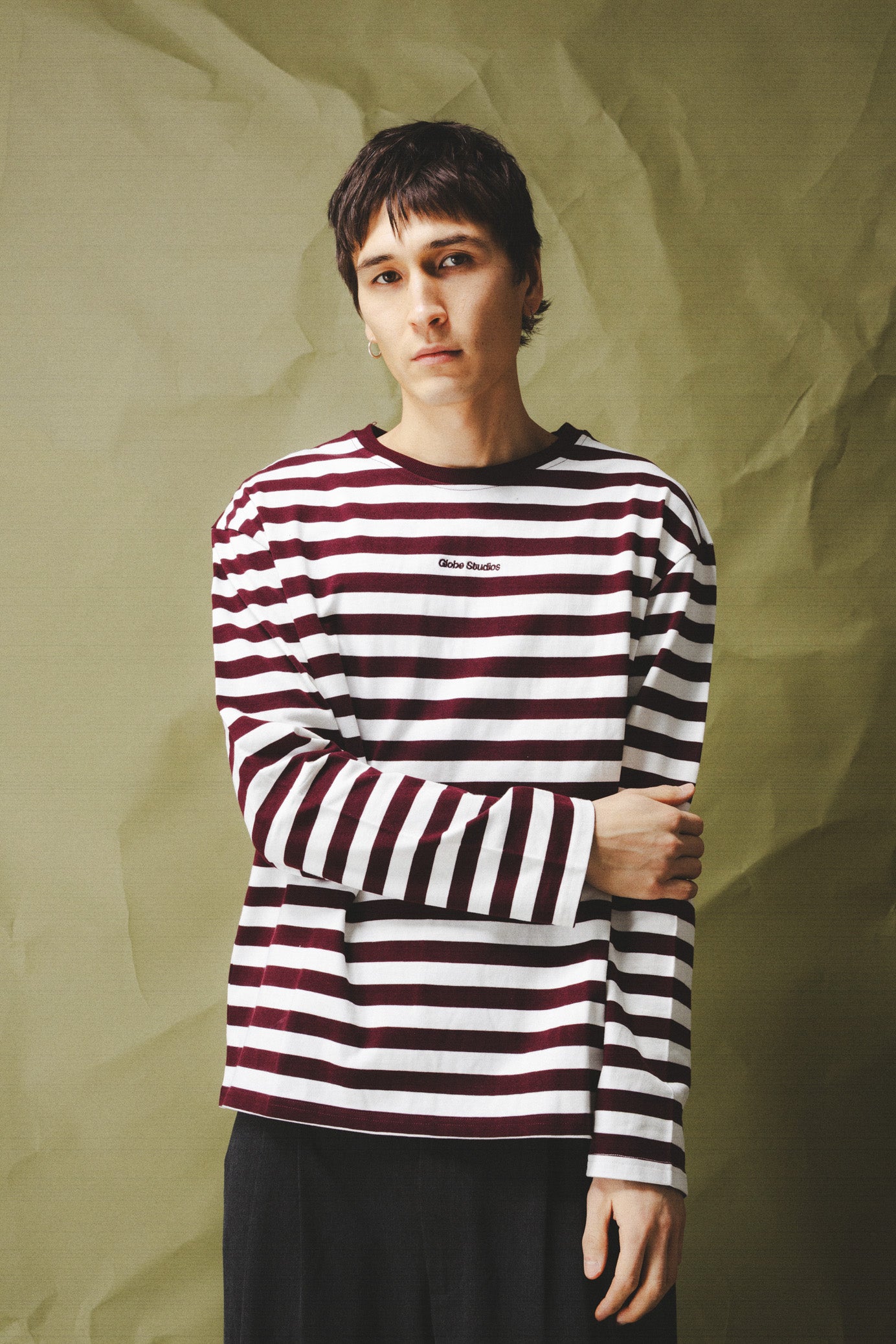 Made from 100% cotton, our Striped Long Sleeve combines comfort with a classic, timeless look. The shirt is detailed with an embroidered Globe Studios logo on the chest, adding a subtle and exclusive touch.